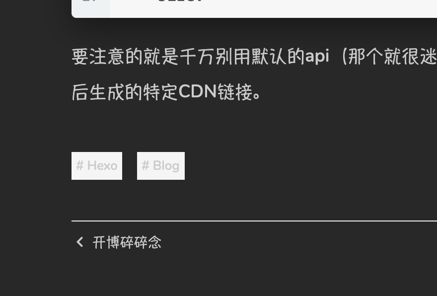 字体窝佬卡了好半天,网上的说法大都是要去改CSS,然而不知道那个.swig文件的语法究竟如何,窝佬最后发现可以直接在主题配置文件里面引用google fonts,并且英文字体都很巧妙的支持了中文(就很有意思)更正: 后来发现在MAC上显示了中文显示了是因为窝佬配置了base.styl: // Font families.