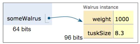 The 64 bit box contains not the data about the walrus, but instead the address of the Walrus in memory.