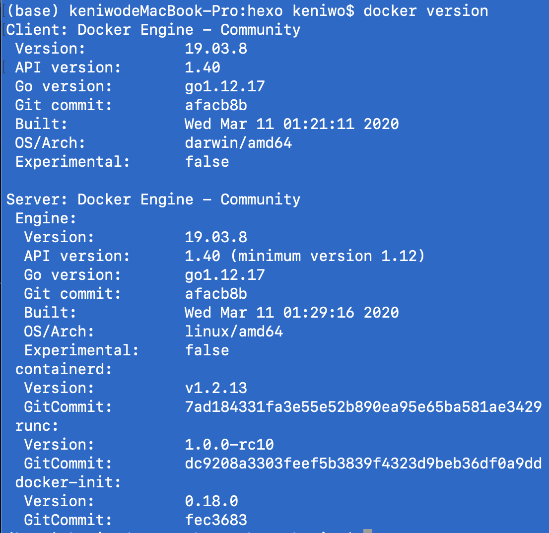 Actually 我们可以打开terminal很直观的看到这个linux vm,只需要输入 $docker version,就可以看到 OS/Arch 一行中显示linux/amd64。