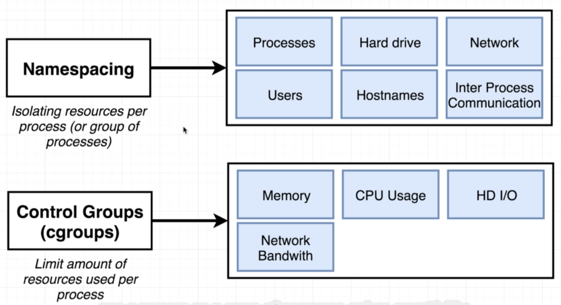 Name Spcacing对应的还有一个概念叫做control group,它能够为每个进程分配有限的资源,比如Memory,CPU usage和bandwidth。