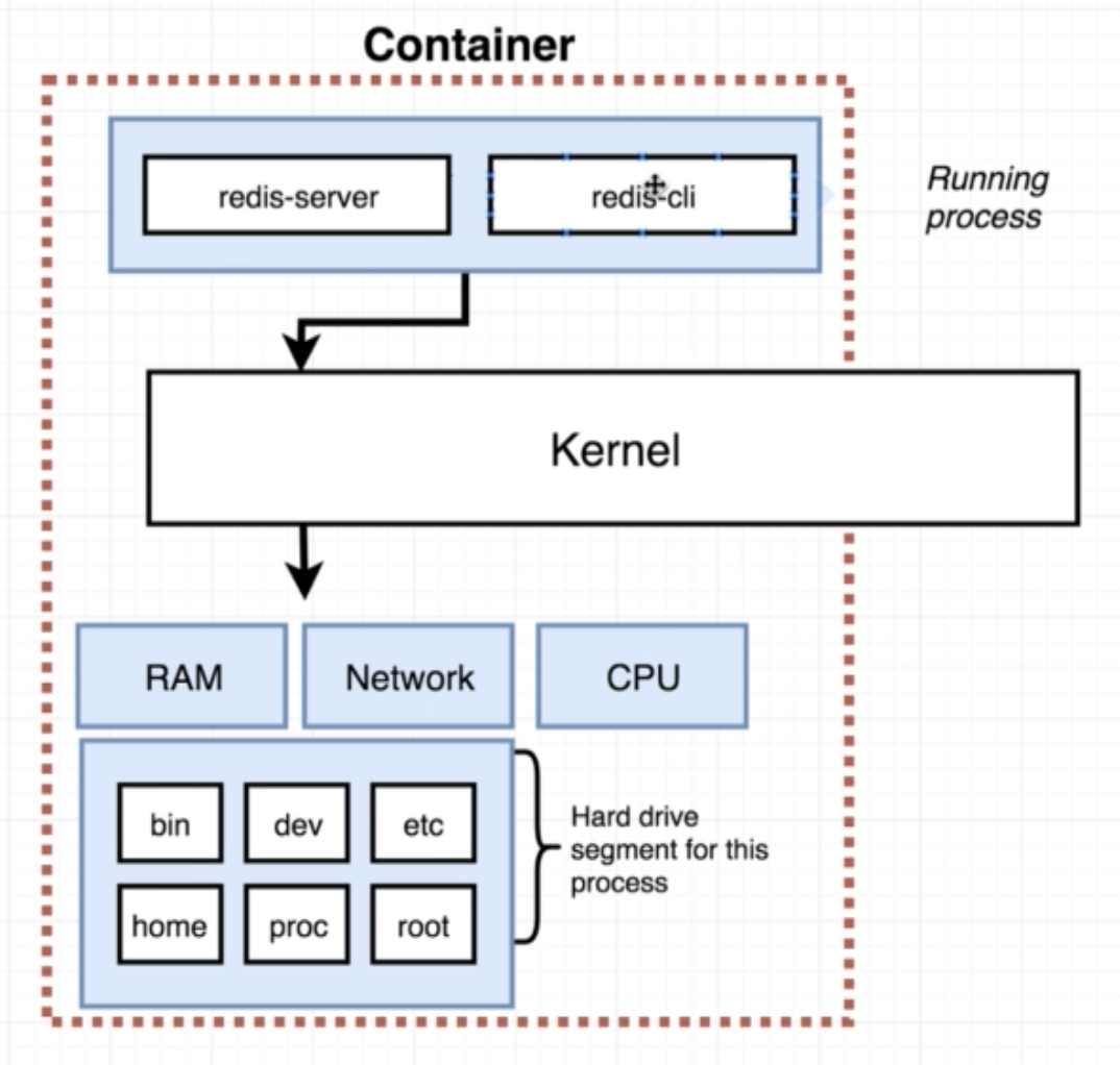 所以,container实际上就是一组被逻辑上划分开来的进程组合,它们可以拥有os分配好的独立硬件资源,供进程使用。
